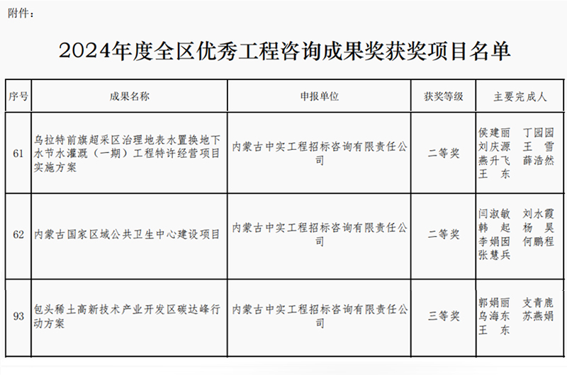 2025-04-167659 次2025年4月16日,内蒙古工程咨询协会公布了2024年度优秀咨询成果奖获奖单位名单,我司取得两个二等奖和一个三等奖,我司专业能力和服务质量再次获得行业的认可。此次获奖,不仅体…